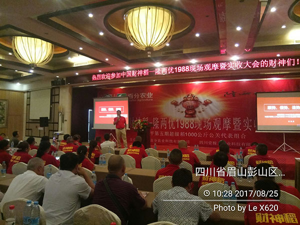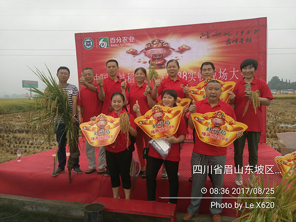 2017年8月24-25日,在蘇東坡的故鄉(xiāng)眉山市順利舉行了百分農(nóng)業(yè)四川區(qū)域2017-2018年度財(cái)神稻現(xiàn)場(chǎng)實(shí)收測(cè)產(chǎn)觀摩暨市場(chǎng)啟動(dòng)大會(huì)。百分農(nóng)業(yè)總經(jīng)理江潤良,西南大區(qū)經(jīng)理?xiàng)羁偅拇ㄒ技谌丝偨?jīng)理燕總攜團(tuán)隊(duì),及四川各區(qū)域的代理商、零售商和種植大戶200余人參與了會(huì)議。