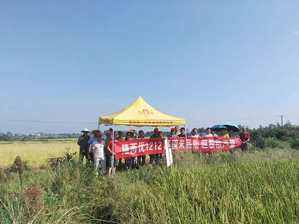 觀摩完后進(jìn)行室內(nèi)會(huì)議,百分農(nóng)業(yè)區(qū)域經(jīng)理李經(jīng)理就“隆王稻隆兩優(yōu)1212品種介紹”給大家進(jìn)行了講解,對(duì)品種來源、抗性、米質(zhì)、公司對(duì)隆兩優(yōu)1212的營銷規(guī)劃方面做了詳細(xì)介紹,同時(shí)還就品種抗倒性進(jìn)行詳細(xì)地介紹并拿出在田間帶來的隆兩優(yōu)1212植株給大家展示。代理商王總就“廣水地區(qū)水稻現(xiàn)狀和未來發(fā)展”同大家進(jìn)行了探討。大家一致認(rèn)同米質(zhì)優(yōu)、抗性好、產(chǎn)量高的優(yōu)質(zhì)稻將是未來廣水的首選。
