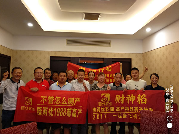 2017年8月29日,在澧縣經(jīng)銷商王擁軍與財(cái)神稻湖南大區(qū)劉浩經(jīng)理的精心組織下,召開(kāi)了澧縣財(cái)神稻測(cè)產(chǎn)訂購(gòu)會(huì)。參會(huì)人員有財(cái)神稻湖南區(qū)域副經(jīng)理劉浩、澧縣優(yōu)秀代理商王擁軍及澧縣財(cái)神稻的十多位核心零售商。