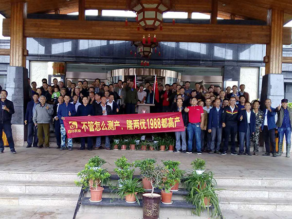 回到會(huì)場,先有百分農(nóng)業(yè)李經(jīng)理對隆兩優(yōu)1988做介紹,百分農(nóng)業(yè)湖北大區(qū)經(jīng)理魏經(jīng)理對公司現(xiàn)狀和目前湖北種業(yè)現(xiàn)狀以及隆兩優(yōu)1988后期發(fā)展規(guī)劃進(jìn)行了詳細(xì)的解讀。最后代理商陳總為大家講解目前廣水地區(qū)種業(yè)現(xiàn)狀并指出隆兩優(yōu)1988超抗病、超抗倒、超高產(chǎn)這三個(gè)特性是非常切合廣水優(yōu)質(zhì)稻市場的需求。在陣陣稱贊與叫好聲中,到會(huì)的零售商和種植大戶可謂乘興而來,盡興而歸,隆兩優(yōu)1988的表現(xiàn),也在廣水零售商和種植大戶心中留下了極好印象。