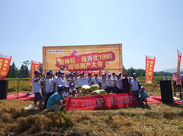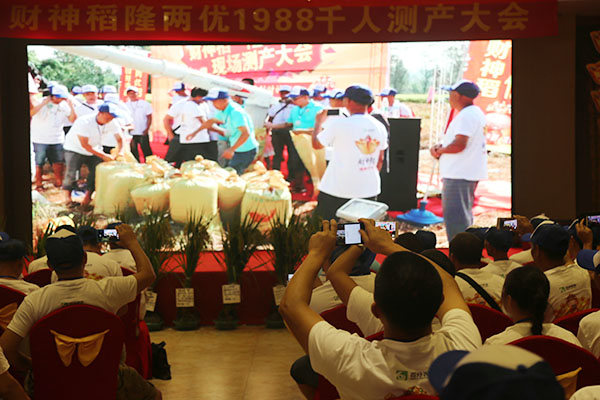 當(dāng)天,重慶各個(gè)區(qū)縣的水稻經(jīng)銷(xiāo)商、種糧大戶和村民代表等六七百人,通過(guò)到現(xiàn)場(chǎng)觀摩或在酒店觀看電視直播方式,一起見(jiàn)證了隆兩優(yōu)1988水稻在新盛鎮(zhèn)新盛村種植的情況。經(jīng)過(guò)對(duì)唐洪平種植的1.3畝水稻進(jìn)行機(jī)收測(cè)產(chǎn),平均畝產(chǎn)量達(dá)1965.27斤,成為梁平最高水稻畝產(chǎn)量,高出村民種植的常規(guī)水稻700斤左右。