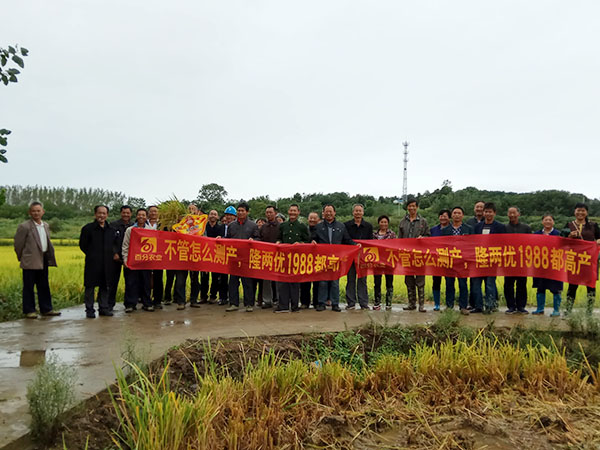 朱總在田間引導(dǎo)種植戶下田觀察,有一位種植戶到田間拔了一株隆兩優(yōu)1988,直接數(shù)分蘗,高興地說(shuō):“隆兩優(yōu)1988分蘗有45根,等了這么多年,也種植了這么多年水稻,這才是我們真的需要的品種”,種植戶們認(rèn)真地觀賞著隆兩優(yōu)1988,仔細(xì)的數(shù)稻穗、結(jié)實(shí)率、分蘗數(shù),發(fā)出滿滿的贊嘆聲,紛紛拍照留影。