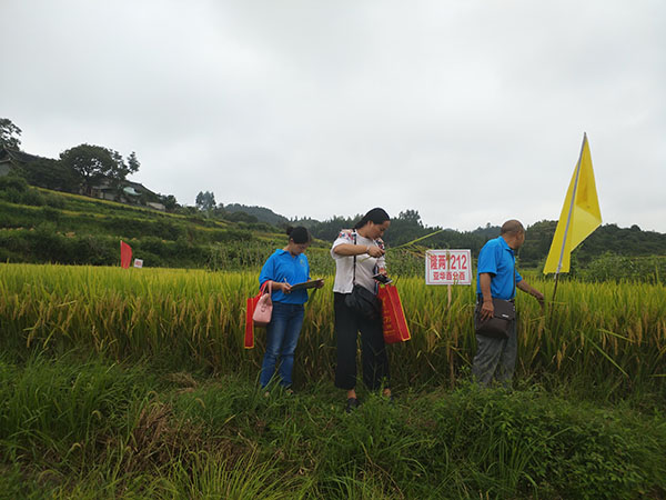 上午九時(shí)許,各人員乘車來到坪村鎮(zhèn)巖壁村觀摩隆王稻——隆兩優(yōu)1212。首先由零售商自行觀摩隆兩優(yōu)1212的田間表現(xiàn),再由示范田種植戶龍安福講解種植的田間管理,最后由公司代表羅琳輝經(jīng)理簡(jiǎn)單介紹品種的一些株葉形態(tài)等生理特征特性,各零售商都紛紛做好記錄,同時(shí)詢問隆兩優(yōu)1212的抗病性、抗倒性、米質(zhì)和產(chǎn)量等方面的表現(xiàn),之后由粟永榮粟總宣布訂購(gòu)優(yōu)惠政策,各零售商都積極訂購(gòu),最終統(tǒng)計(jì)訂購(gòu)量達(dá)1200公斤。還有幾個(gè)零售商表示明年可以在他們當(dāng)?shù)刈鍪痉短铮芾硭綍?huì)更好。