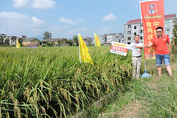 2017年9月8日,江西省新干縣召開了隆兩優(yōu)華占零售商觀摩及種植大戶預(yù)訂會(huì)議,全縣各鄉(xiāng)鎮(zhèn)零售商和種植大戶等80余人前往七琴鎮(zhèn)現(xiàn)場觀摩。