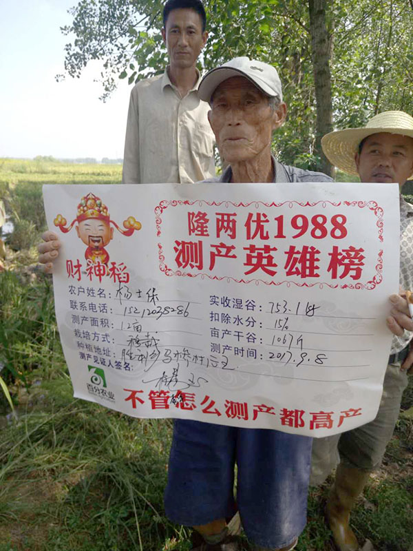 在今年財(cái)神稻經(jīng)歷前期連續(xù)的高溫天氣和后期連續(xù)的陰雨天氣后,依舊表現(xiàn)的如此強(qiáng)勢(shì),讓廣大的種植戶們贊不絕口。財(cái)神稻——隆兩優(yōu)1988用災(zāi)年穩(wěn)產(chǎn)、豐年高產(chǎn)的潛能書(shū)寫(xiě)了一個(gè)又一個(gè)奇跡!