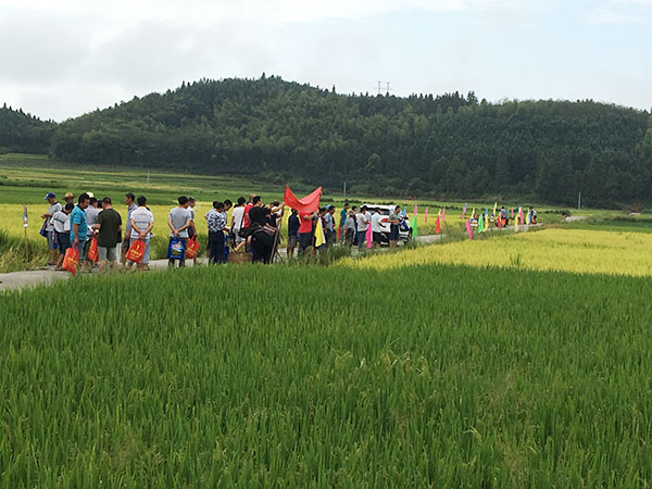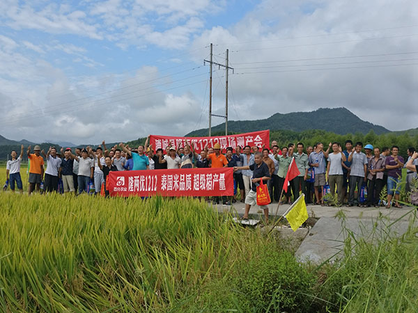 2017年9月9日,百分農(nóng)業(yè)與福建南平蒲城縣仙樓種子經(jīng)營部共同在蒲城縣推廣隆王稻隆兩優(yōu)1212,蒲城縣經(jīng)銷商周建勇組織了永安鎮(zhèn)、石陂鎮(zhèn)和臨江鎮(zhèn)三個鄉(xiāng)鎮(zhèn)89位各村種植代表來到永興鎮(zhèn)永平農(nóng)場參與隆王稻觀摩測產(chǎn)大會,讓他們深入了解隆王稻,開展蒲城第一場隆王稻現(xiàn)場觀摩啟動會。