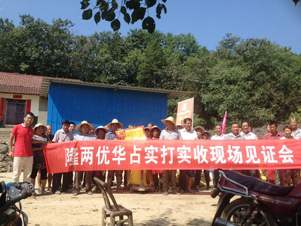 講得差不多時,收割也完成了,大家紛紛抑制不住激動趕緊開始稱量工作,通過大家的努力,最后得到的結果用“喜獲豐收”已不足以表達這驚人的產量:9月12日,鐘祥鎮(zhèn)東橋村歲灣村二組農戶劉威收割1.43(標畝)隆兩優(yōu)華占,實收3396斤,扣除10%水分,畝產干谷2137斤!付出終有回報!隆兩優(yōu)華占不負期望,滿載而歸!