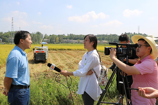 何店鎮(zhèn)農(nóng)技中心農(nóng)藝師王保明表示:今年稻谷比去年產(chǎn)量要高。第一,這個(gè)品種抗高溫,因?yàn)榻衲甑臏囟缺容^高,35°以上的高溫天氣比較長(zhǎng)。第二,總體來說今年的病害非常輕,這個(gè)品種結(jié)實(shí)率比較高,所以產(chǎn)量今年比去年要好。