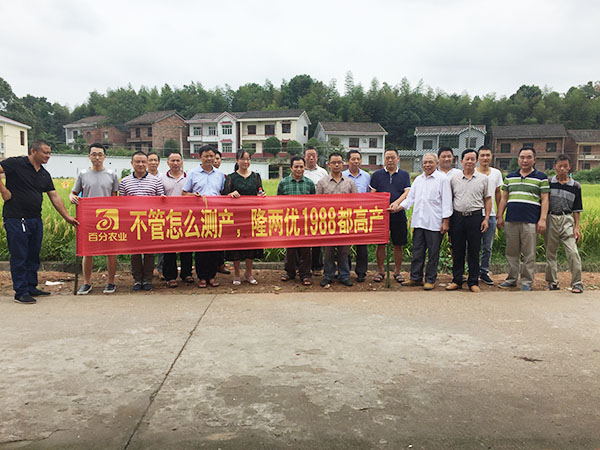 冒著烈日在田間細看了30多分鐘,經銷商們個個都滿頭大汗,還是非常高興的拍下此次觀摩會的全體合影。從田間回到一個農家飯店后開始室內會議,百分農業(yè)梅經理和醴陵代理商吳總分別就此次觀摩會做了總結,并詳細介紹了該品種的特征特性、高產栽培措施等,表達了對公司的感激之情??偟膩碚f,此次觀摩會是非常成功的,我們相信,在吳總的帶領下財神稻將在醴陵大放異彩,創(chuàng)造新的種業(yè)神話!